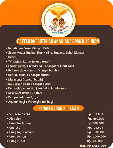 Panti Asuhan Cahaya Karunia hadir untuk mendukung anak yatim dengan kasih dan perhatian tulus.